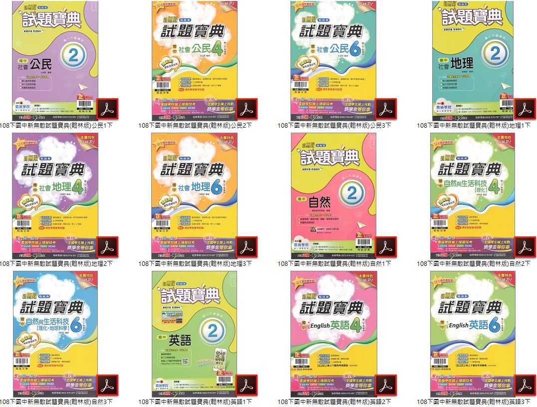 108學年下學期 國中新無敵試題寶典 翰林版 1-3年級 全科目 卷類光碟DVD版