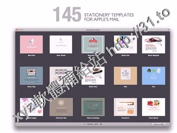 Designs For Mail for Mac是一個很好的Apple Mail信紙模板套件。它擁有145款設計