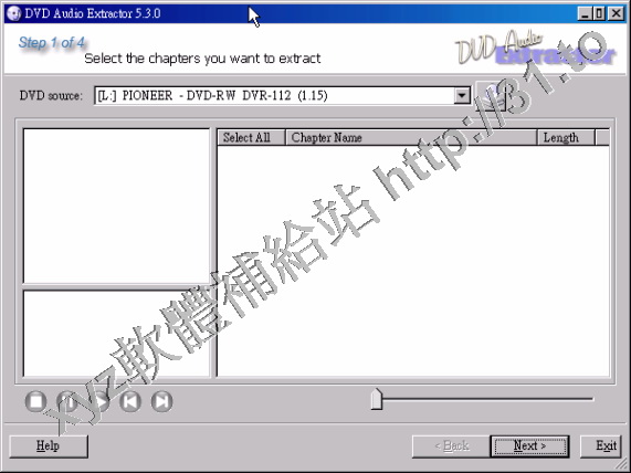 該程式可以幫助你從DVD光碟上提取音頻的軟體,它能幫助你從喜歡的DVD上提取音樂片斷並且